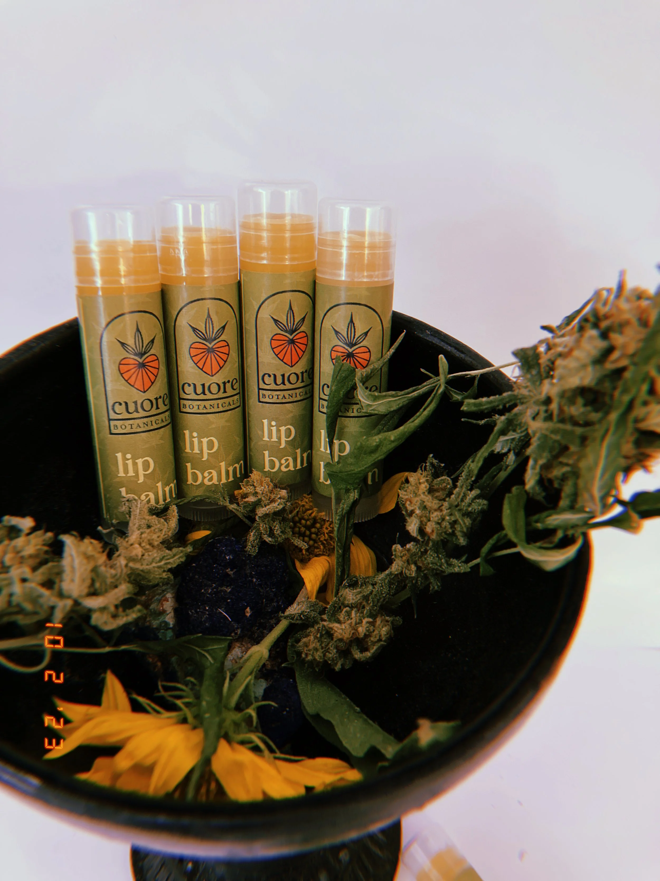 Pure African Shea Butter, Mango Butter, and Cocoa Butter infused with full-spectrum cannabis is the basis of this lip balm, combined with organic jojoba, sweet almond, camellia, and grapeseed oils, and local NM beeswax. No preservatives or fillers.