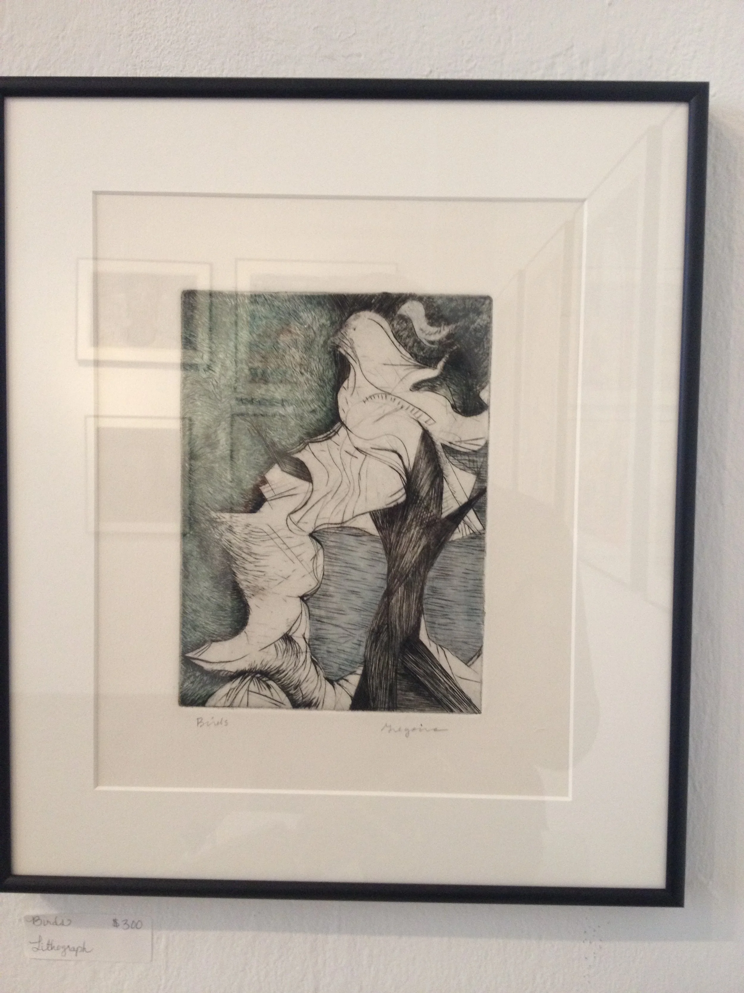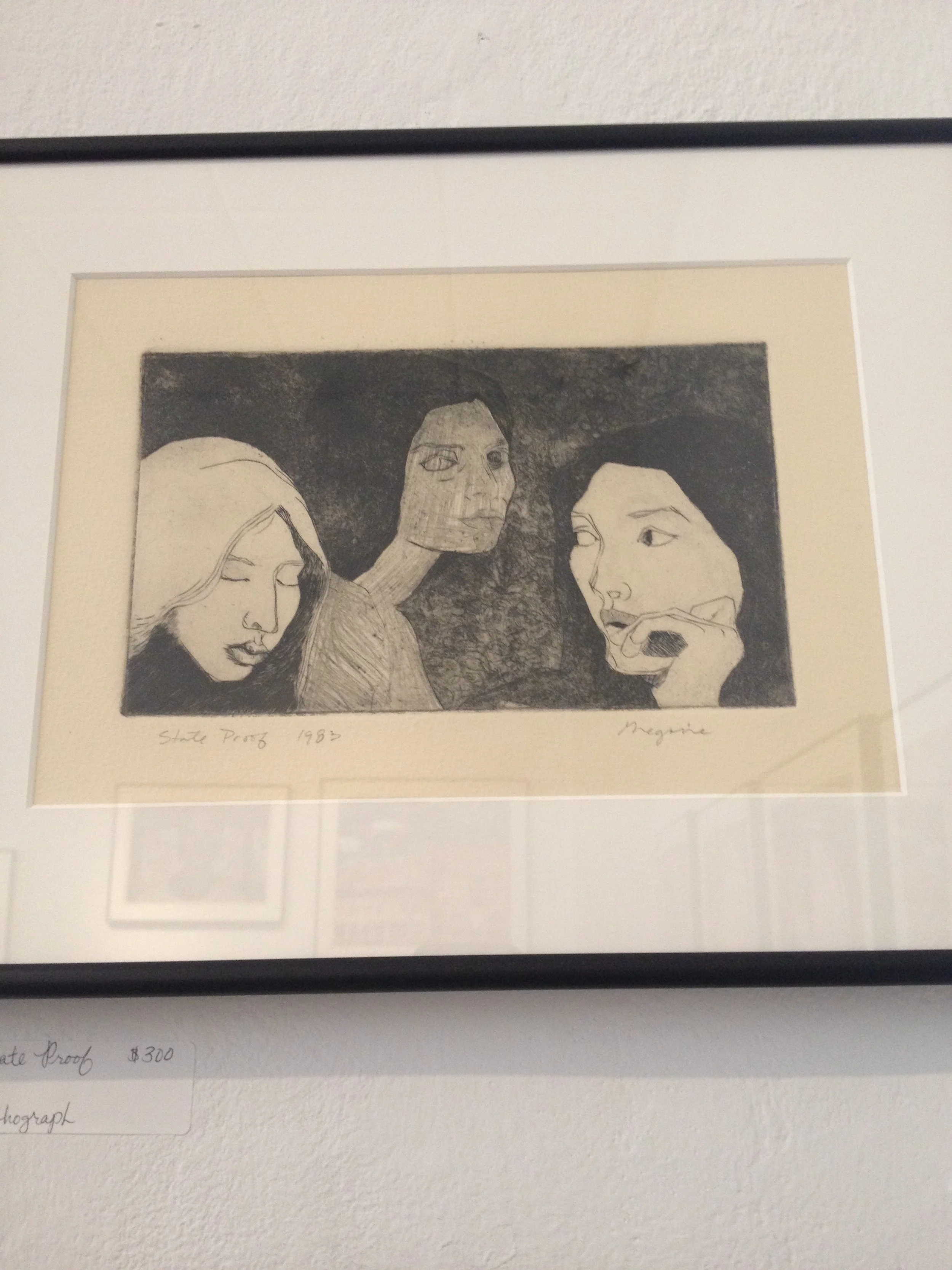 “Judith Gregoire (1963-2008) was an artist who lived and worked in Albuquerque for 20 years. She had a studio in the Harwood Art Center and several important shows in local and international galleries over roughly a ten-year period. I present this show as her daughter and caretaker of her vast collection of work since her death. The show is a retrospective tribute to Judith and shows a multitude of her talents; from paintings & drawings to lithographs, found-object stencils, and photography. Judith touched many lives while she was with us and will continue to do so, through her art, for many years to come.”